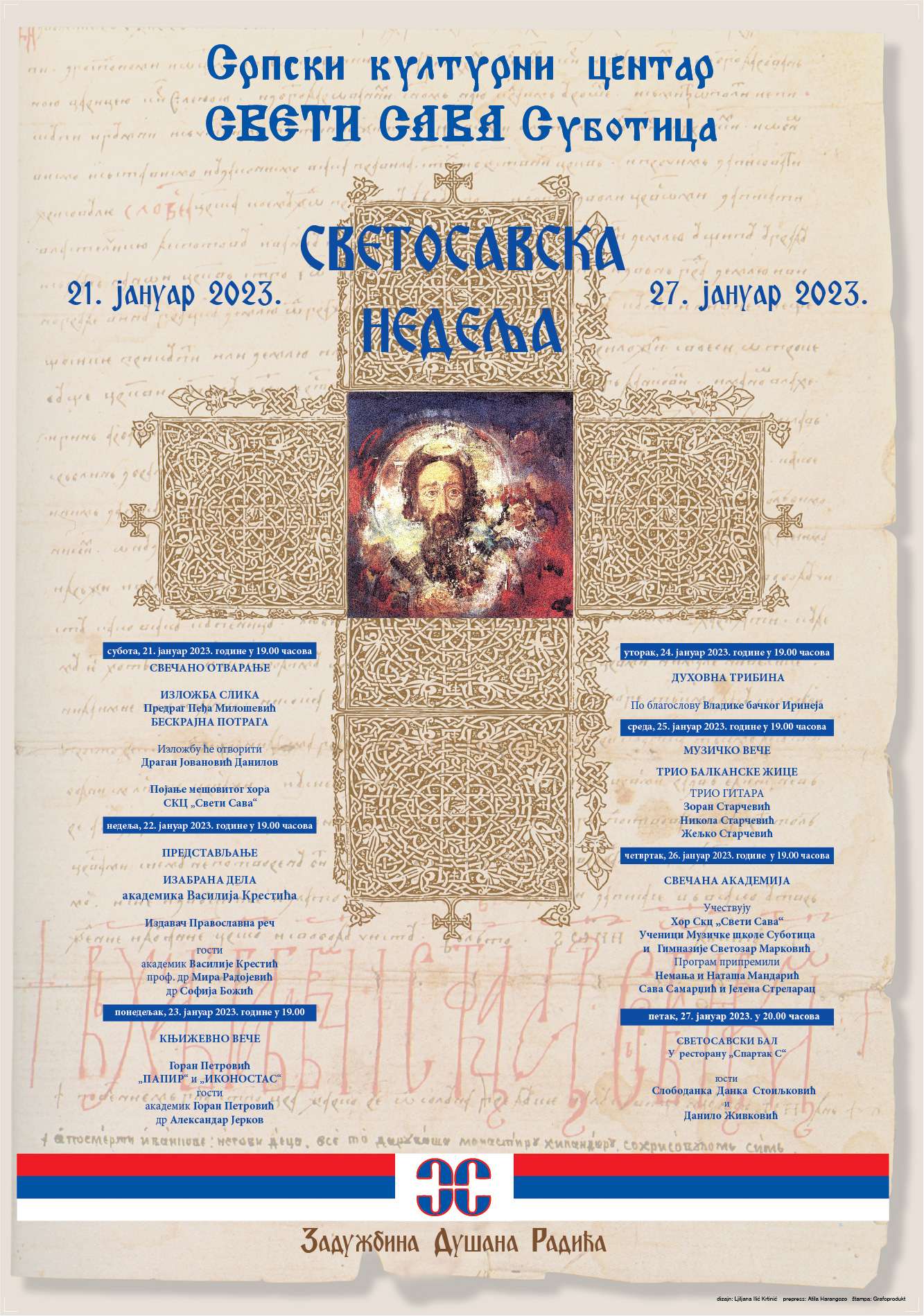 Srpski kulturni centar „Sveti Sava“, zadužbina Dušana Radića, i ove godine organizuje „Svetosavsku nedelju“ koja počinje u subotu 21. januara, sa početkom u 19 časova.