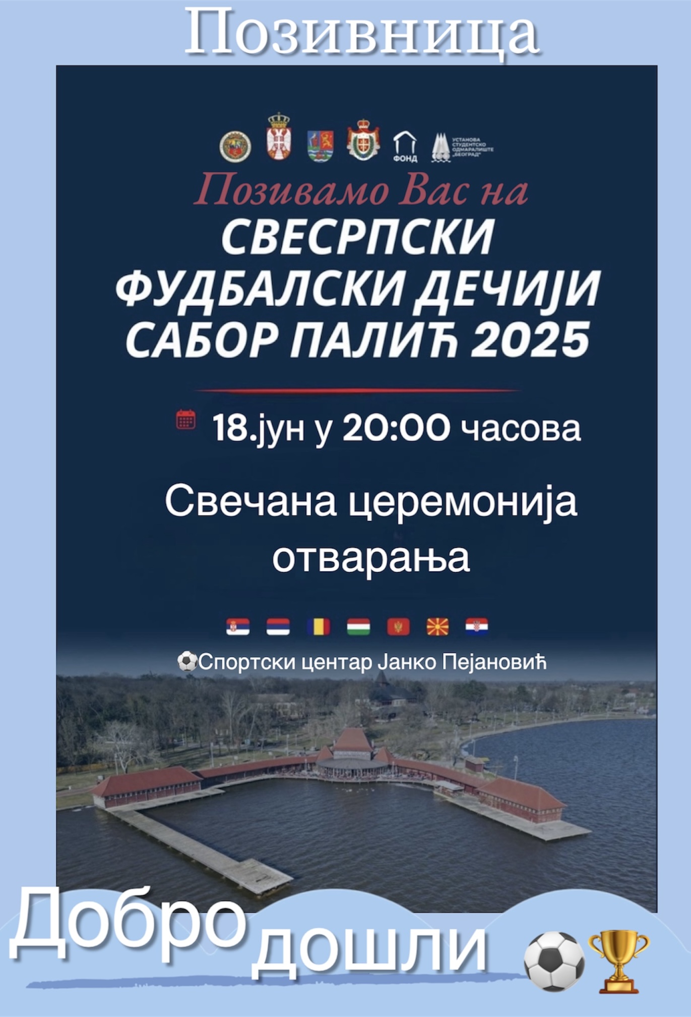 Na obali jedinstvenog Palićkog jezera, u srcu prirodne lepote i sportskog duha, danas, 18. juna svečano će biti otvoren „Svesrpski dečiji fudbalski sabor – Palić 2025“. Početak je zakazan za 20 časova.