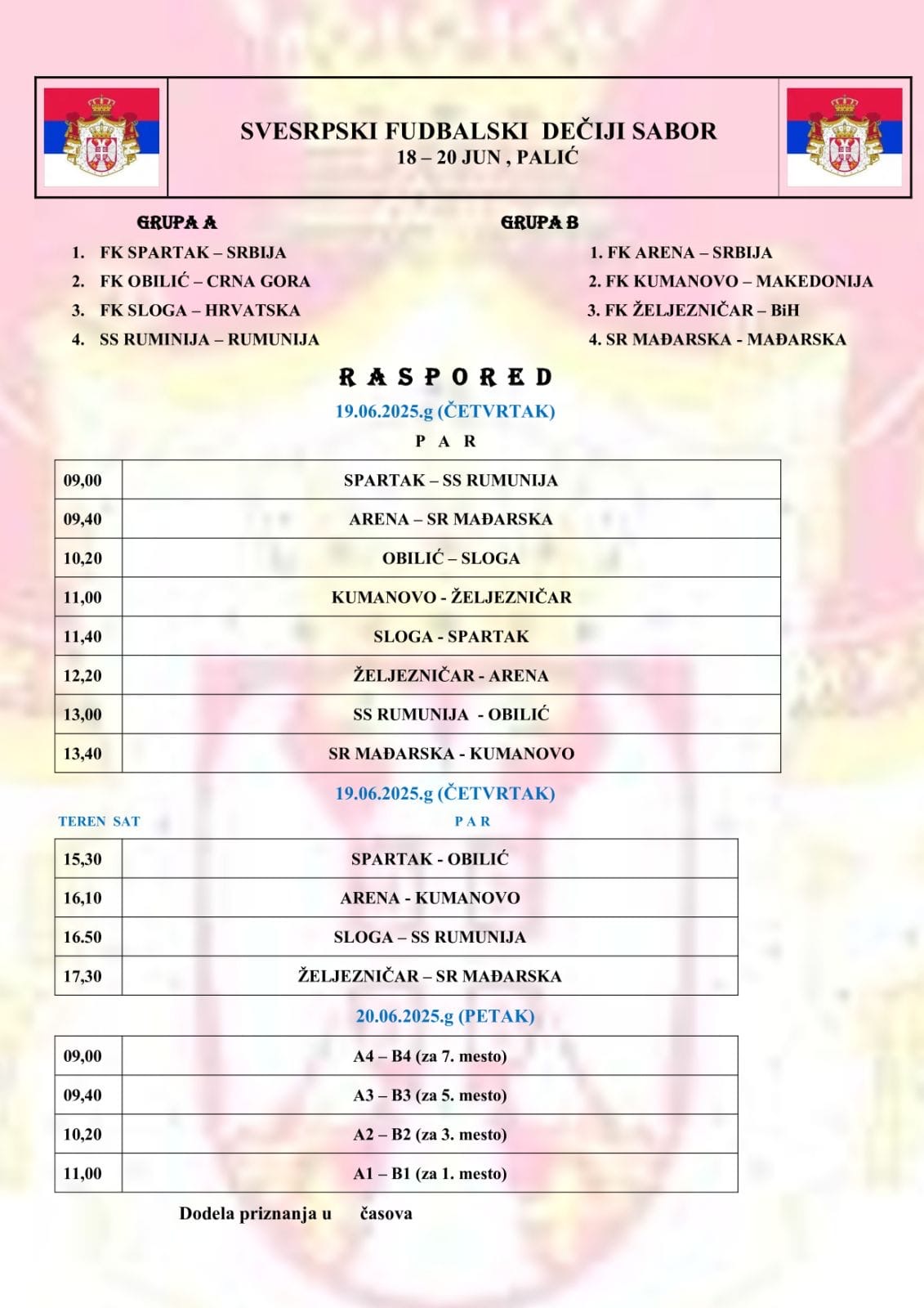 Na ovom fudbalskom saboru, čije je trajanje predviđeno tri dana nastupiće sledeće ekipe:
