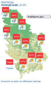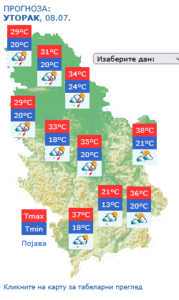 Republički hidrometeorološki zavod Srbije izdao je upozorenje da će veći deo zemlje, danas 7. jula i u naredna tri dana biti pod naletom jakih, olujnih vetrova i uz dosta grada praćenog obilnom kišom. Pljuskovi i grmljavina koji se na području Vojvodine, zapadne i centralne Srbije očekuju u naredna tri dana, doneće značajno zahlađenje i olujni vetar.