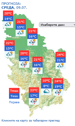 U sredu i četvrtak, 9. i 10. jula, dnevne temperature će se u većini mesta kretati između 23 i 28 stepeni, uz pojačan severozapadni vetar.