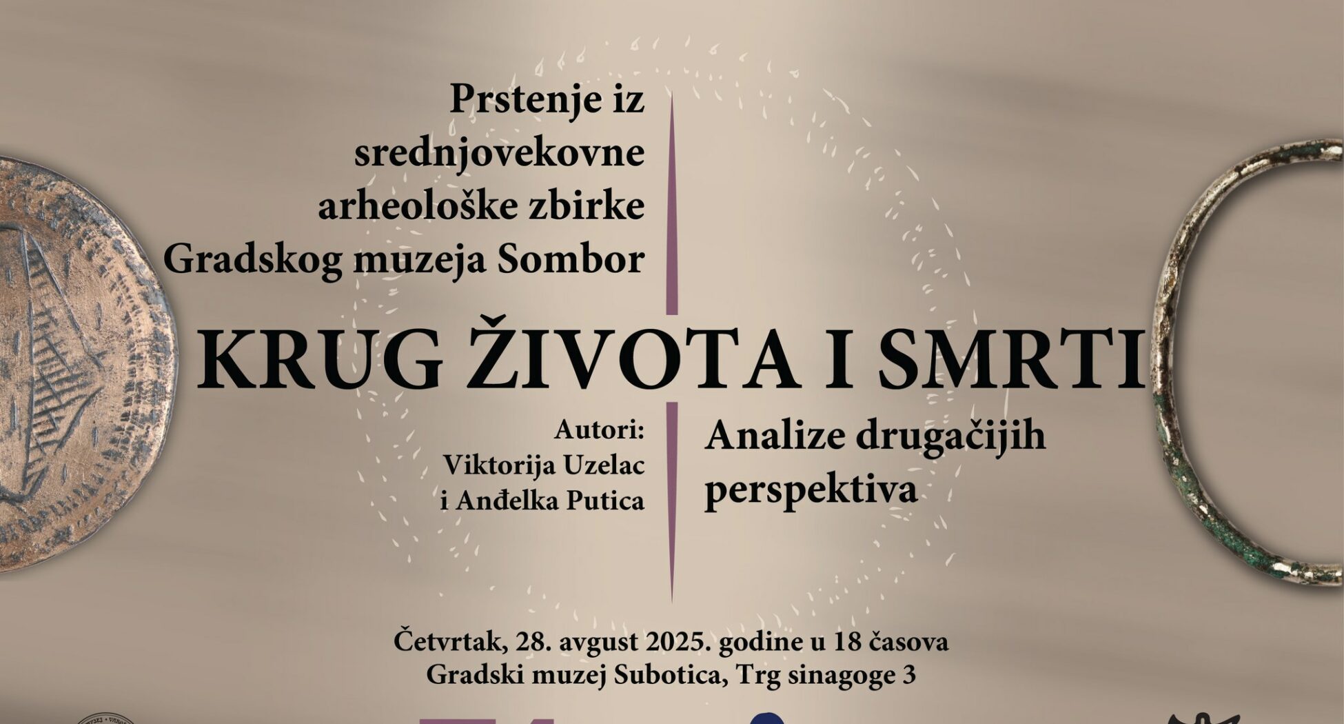 Na izložbi „Krug života i smrti“ – prstenje iz srednjovekovne arheološke zbirke Gradskog muzeja Sombor, po prvi put biće predstavljena celokupna sistematizovana zbirka prstenja iz kolekcije srednjovekovnog nakita, dok je kao rezultat interdisciplinarnih istraživanja i analiza predmeta sa nekropola nastala izložba Krug života i smrti – analize drugačijih perspektiva koja ima za cilj da ukaže na nova saznanja stečena radom Arheološkog odeljenja u proteklih 20 godina.