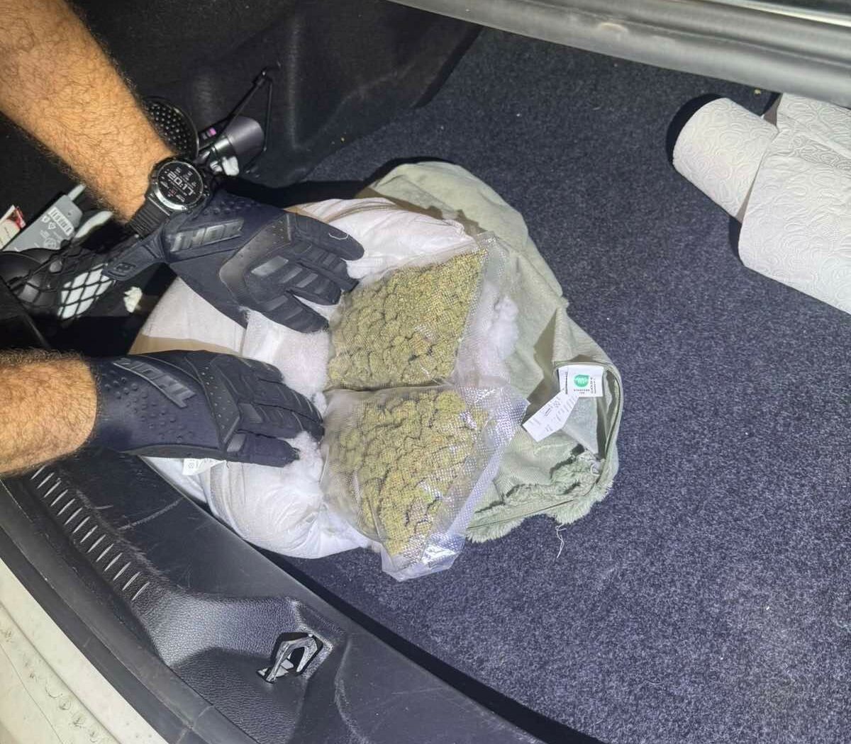 Detaljnom kontrolom uz pomoć službenog psa, najpre je kod vozača pronađena manja količina kokaina, da bi potom u jastuku, koji se nalazio na zadnjem sedištu vozila, bilo otkriveno 506,8 grama marihuane.