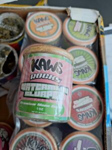 U njoj se nalazilo 16 staklenih teglica sa natpisom „Kaws rock grade slurpee“ ispunjenih sasušenom biljnom materijom, koja je priručnom analizom odreagovala na marihuanu.
