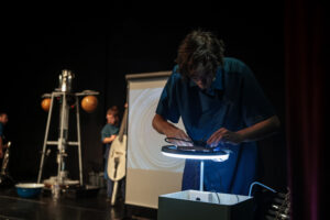 – Ovo je naša nova predstava. Igramo je za decu od tri godine starosti, ali je veoma interesantna i za odrasle jer se bavi istraživanjem, traganjem, otkrivanjem sveta u stalnom pokretu. Nije lako biti glumica i rediteljka istovremeno, i to je naročito teško u fazi istraživanja, ali je tako ipak najbolje jer ste onda potpuno upućeni u sve segmente predstave. Veoma smo srećni što možemo putujemo po svetu s našim pozorištem i jako volimo neverbalne performanse namenjene svima – istakla je Marija Danadova, koje je u ovoj predstavi i rediteljka i glumica.