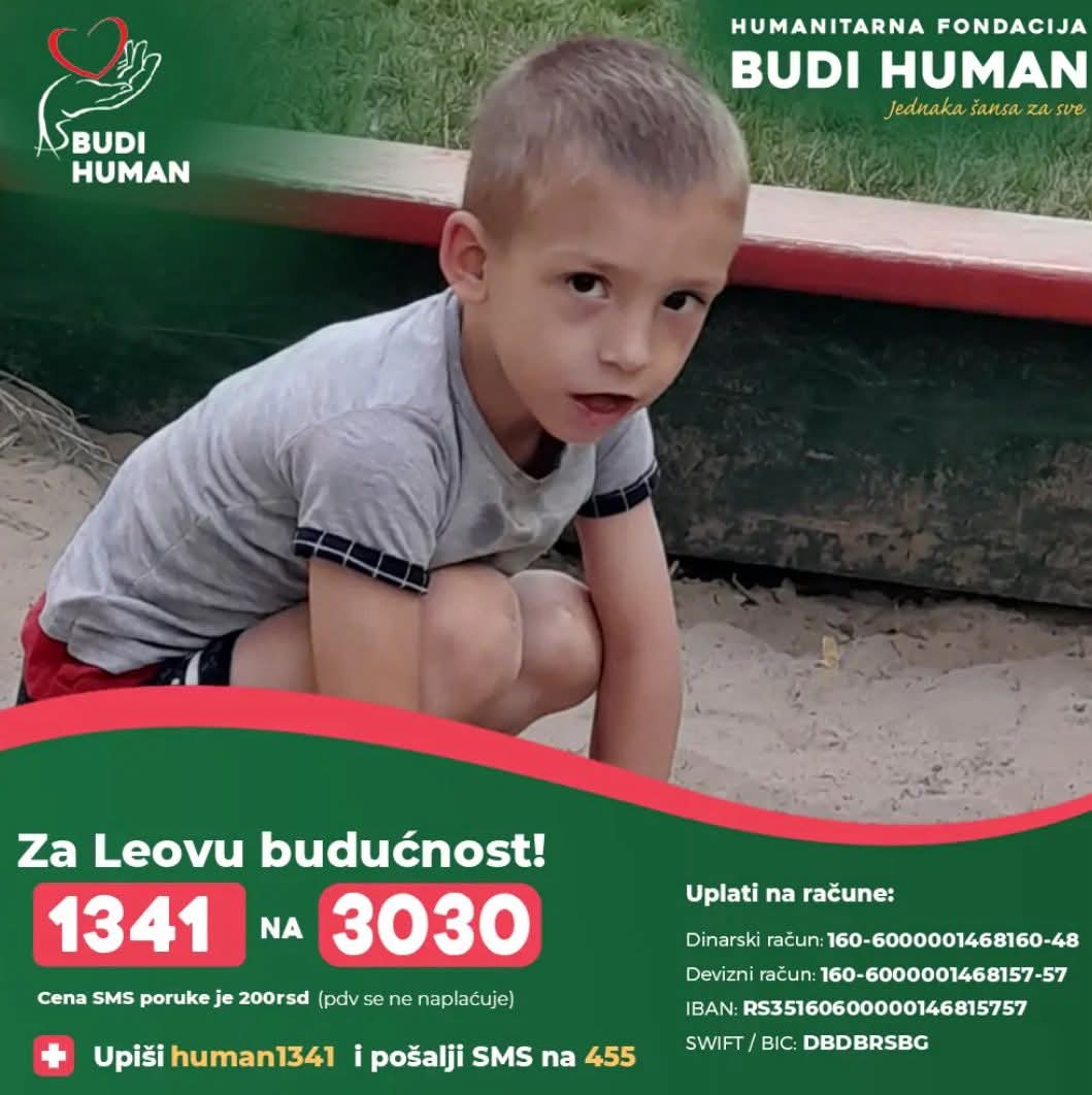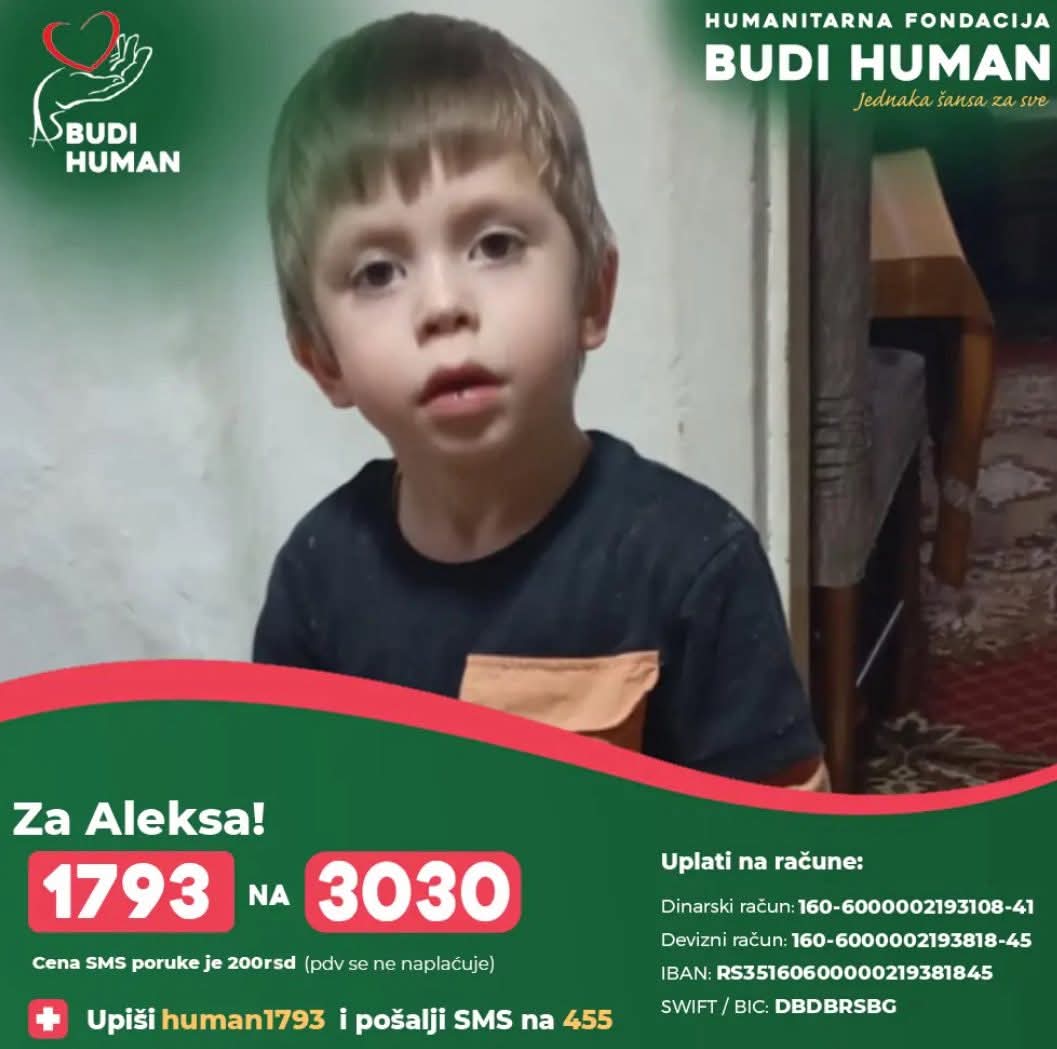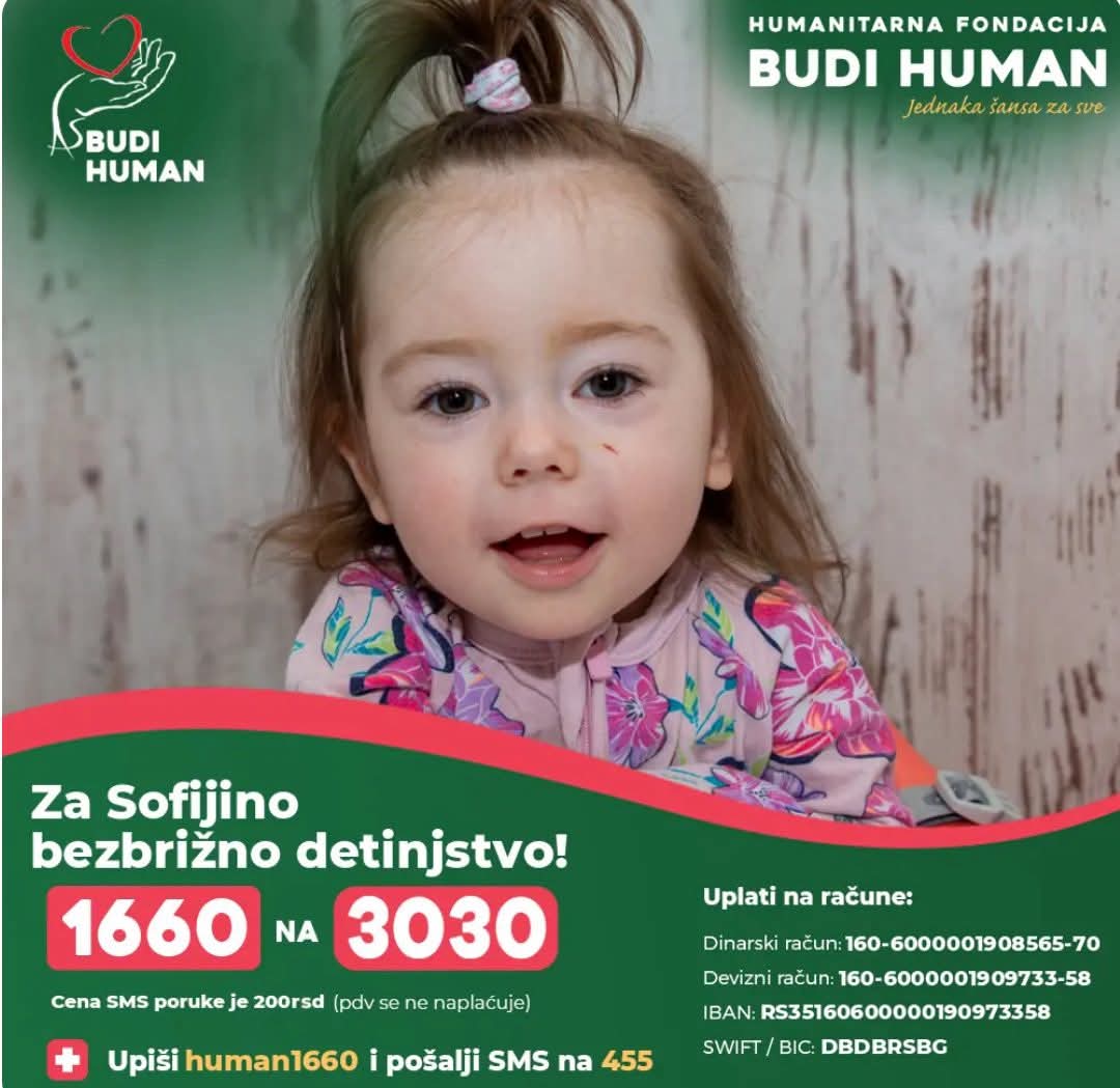 Neformalna grupa građana „Naše malo nekome je sve“ najavila je veliku humanitarnu manifestaciju pod nazivom „Porodična karika humanosti“, koja će biti održana u nedelju, 28. septembra, kod Hale sportova, u periodu od 7 do 13:30 časova. Cilj ovog događaja je prikupljanje sredstava za lečenje četvoro mališana – Sofije, Branke, Alekse i Lea.