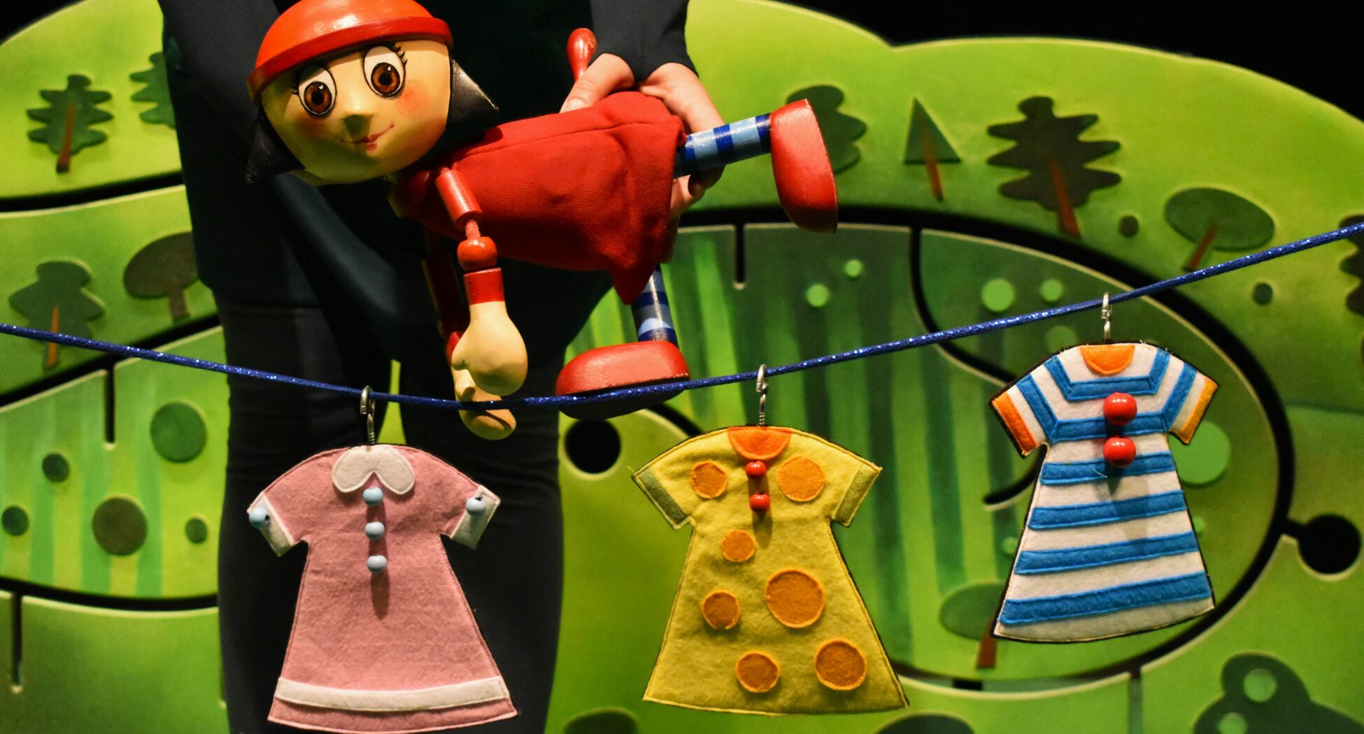 U predstavi “Upleteni među lutkama“ autorke i rediteljke Lorene Kasper Torres, kopajući rupu kako bi pobegli iz zatvora, dva zatvorenika pronalaze čarobnu torbu koja sadrži nekoliko predmeta koji – kada ih dodirnu – misteriozno vraćaju u život razne likove koji su ranije bili utamničeni na tom mestu. Protagonisti se prepuštaju atmosferi zabave i slavlja, pozivajući gledaoca da se uplete među lutke. Muzička predstava s lutkama i glumcima koja kombinuje kreativnost, pantomimu, komediju, muziku i dašak zavodljivosti kako bi publiku prepustila mašti.