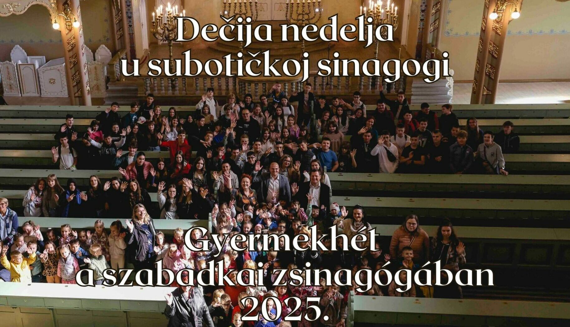 U organizaciji Fondacije „Subotička Sinagoga“ od 6. do 10. oktobra u sinagogi će da se održi „Dečja nedelja“. Manifestacija je namenjena deci predškolskog uzrasta i učenicima osnovnih škola, a programi će se realizovati svakog dana od 10 do 18 časova.