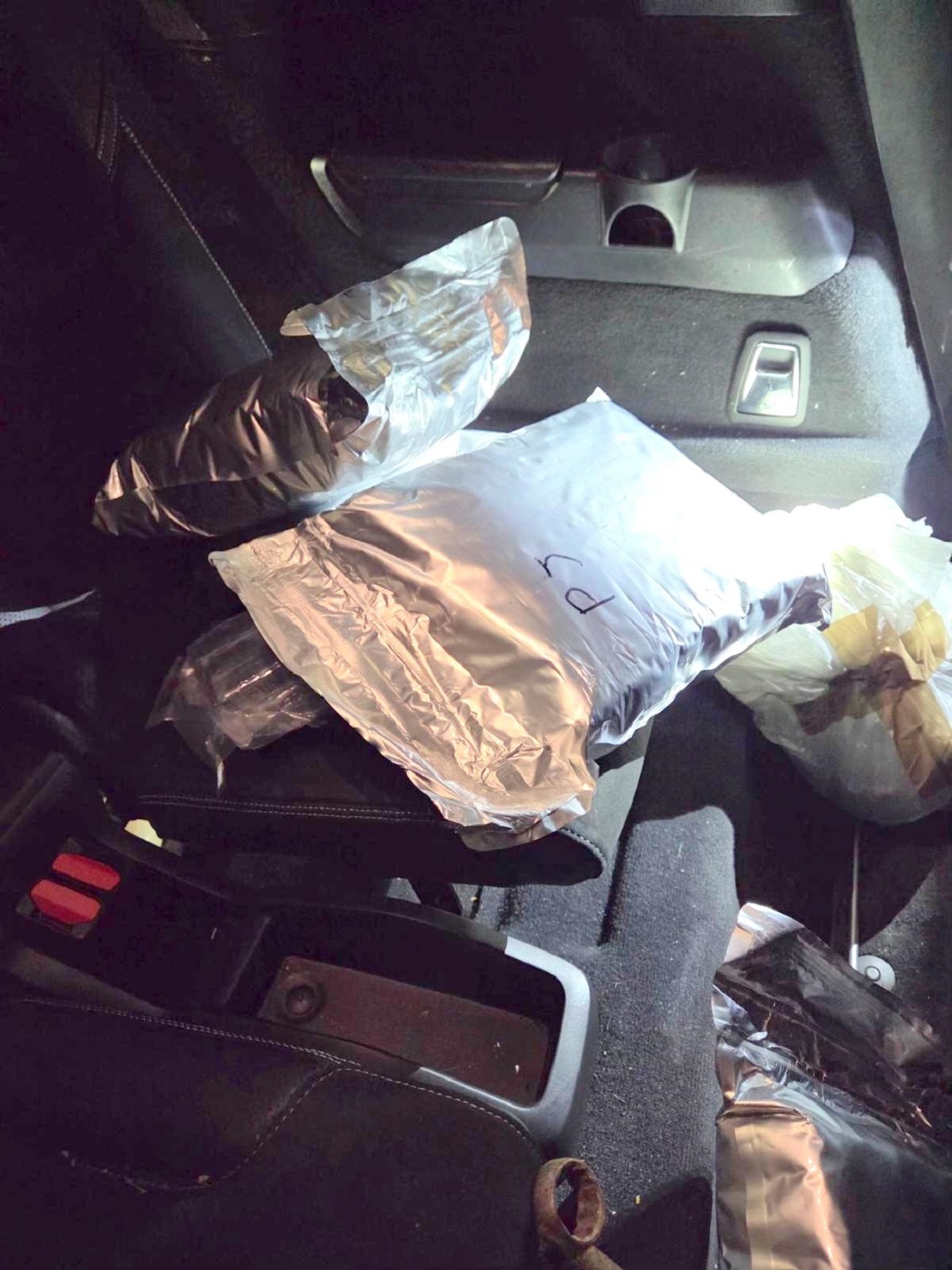Detaljnom kontrolom utvrđeno je da je reč o devet paketa droge i to 2,3 kilograma praškaste materije nalik kokainu, skrivene u dva pakovanja sa nalepnicama popularnog keksa i još 7,3 kilograma marihuane raspoređenih u sedam paketa.