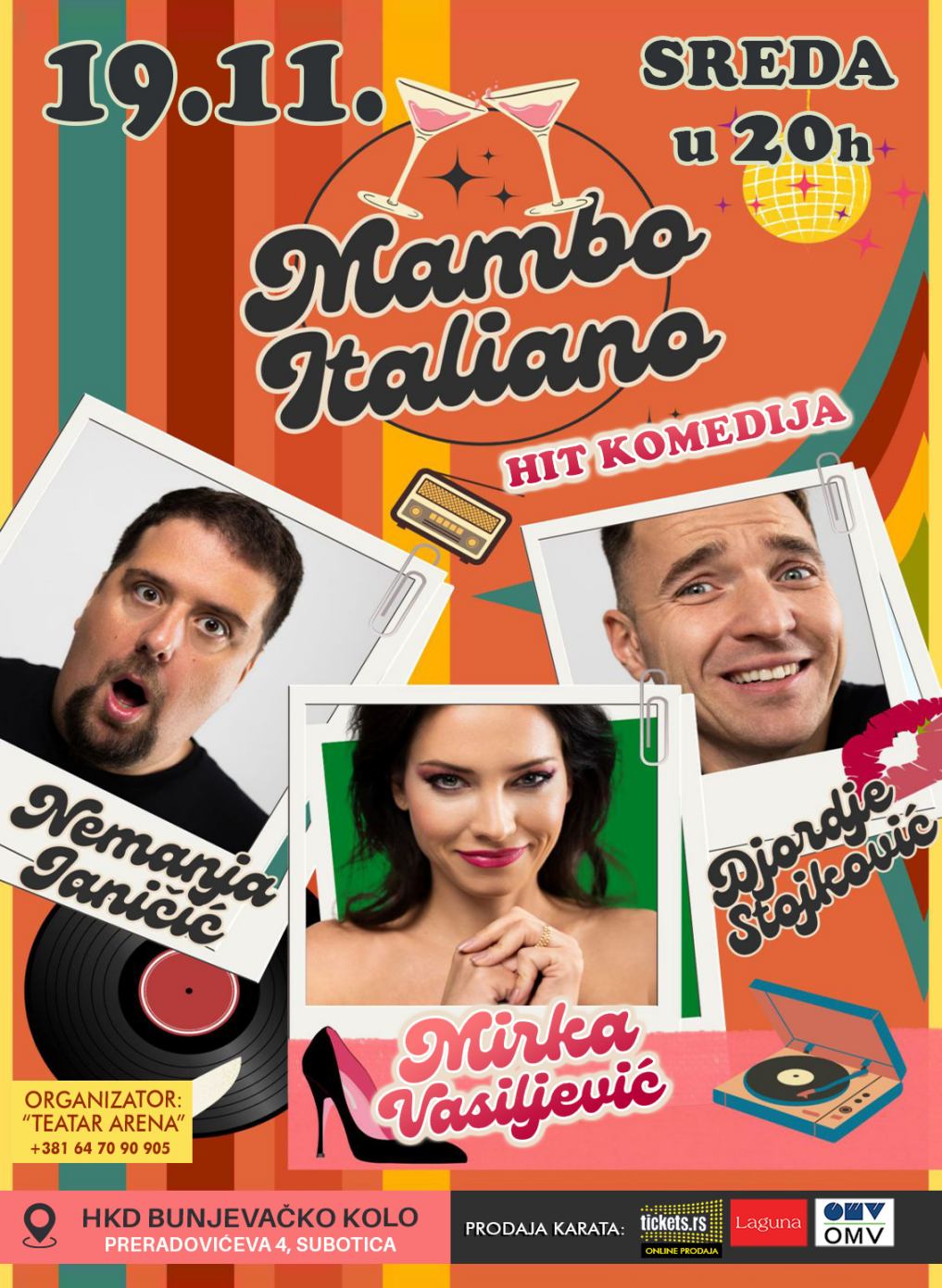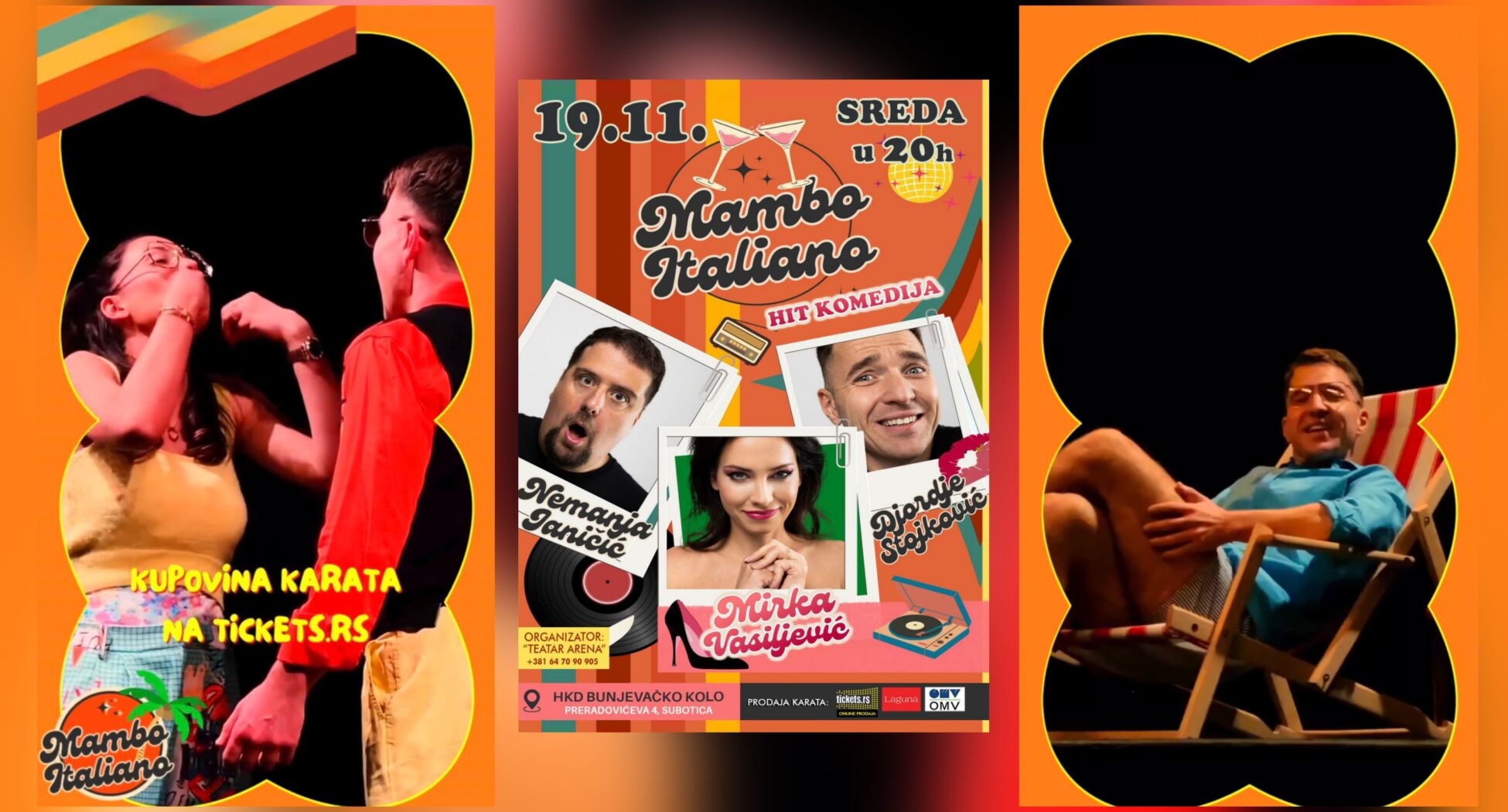 Publiku očekuje dinamična, duhovita i vizuelno bogata predstava, koja sa mnogo stila kombinuje elemente komedije situacije, satire i crnog humora. Predstava „Mambo Italiano“ donosi prepoznatljiv duh, raskoš emocija, muziku, strast i ironiju života, uz dozu nostalgije za sedamdesetim godinama. Publiku u Subotici očekuje nezaboravno veče ispunjeno smehom, ritmom i italijanskim temperamentom – pravo osveženje u novembarskoj kulturnoj ponudi grada.