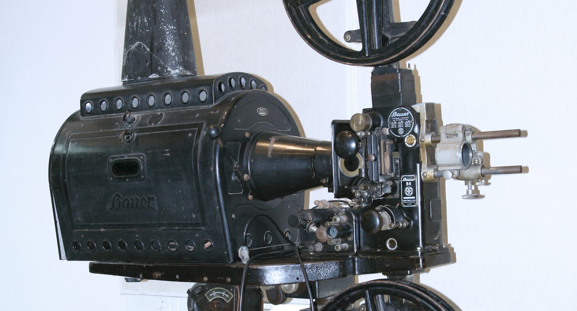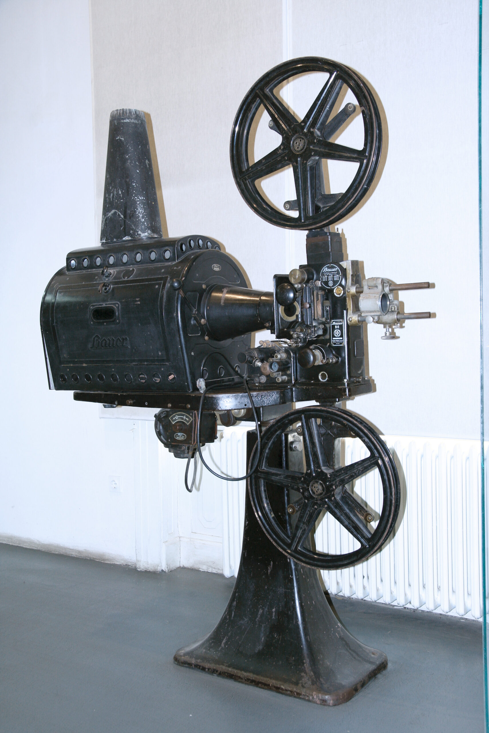 Projektor za filmove Bauer B6 napravljen je od metala, obojen crnom bojom, i stoji na masivnoj podlozi. Proizveden je u međuratnom periodu, tokom 1930-tih godina. Na mašini se nalaze različite oznake koje se odnose na firme proizvođače projektora i elektromotora, a posebno su naznačene način upotrebe i karakteristike ove mašine. Oznaka Klangfilm Gmbh odnosi se na firmu osnovanu 1928. godine, koja je proizvodila opremu za bioskope i zvučne filmove. Na jednoj drugoj oznaci možemo pročitati: Eugen Bauer Gmbh, što se odnosi na Eugena Bauera, osobu, stručnjaka za popravku bioskopskih projektora i na istoimenu firmu.