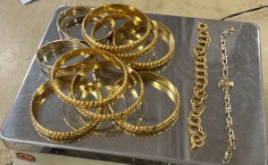 Detaljnom kontrolom je u prostoru između prednjih sedišta automobila, pronađena torba i u njoj dukserica, u koju je bilo uvijeno 239 grama 14-karatnog zlata: 11 narukvica, devet prstenova, šest ogrlica i dva para minđuša.