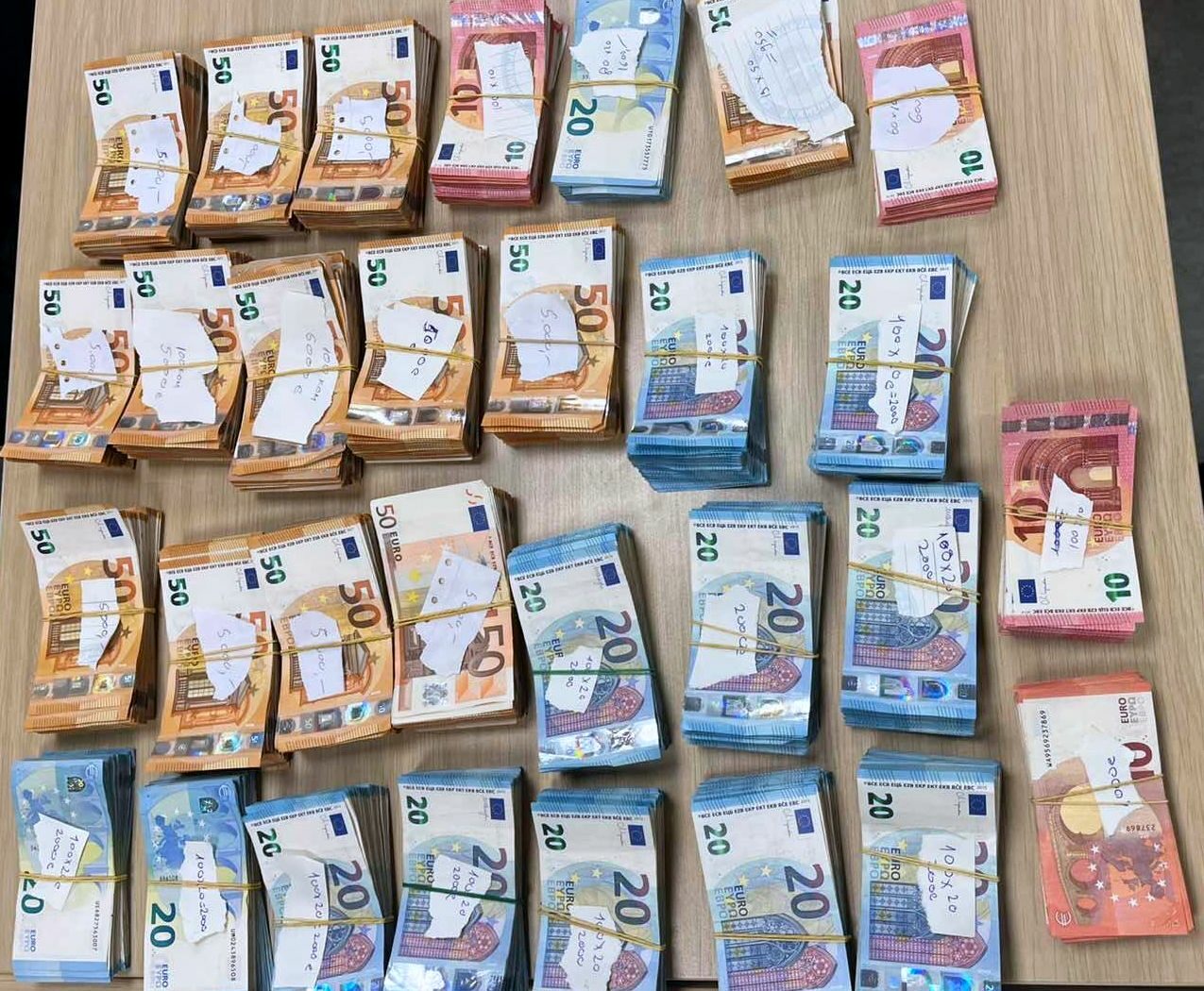 Tokom detaljne kontrole vozila najpre je pronađen ranac sa 90.150 evra, a potom i 26 litara viskija i votke.