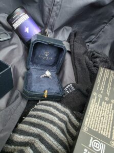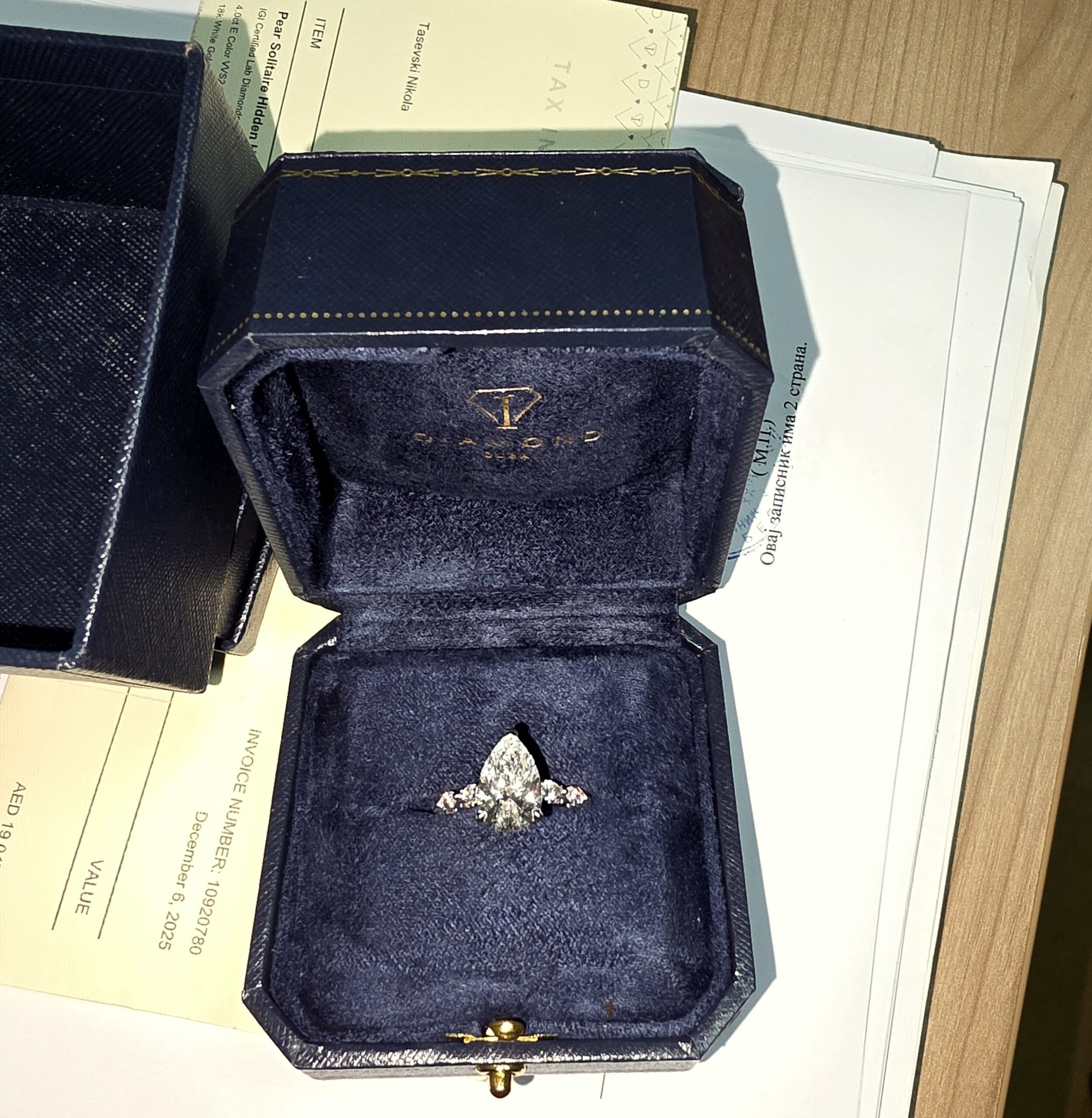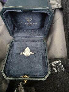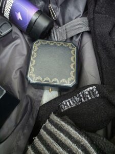 Dijamantski prsten „Pear Solitaire Hidden Halo Ring“, u originalnom pakovanju sa fakturom, pronađen je među garderobom u koferu putnika.