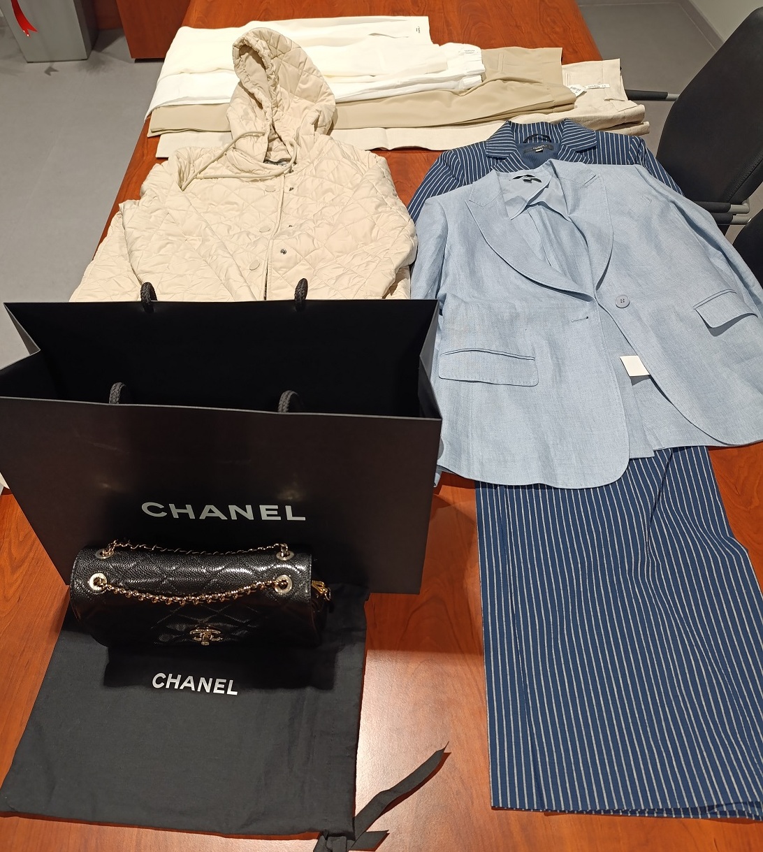 Dan kasnije u zelenom kontrolnom prolazu je otkriven prtljag pun novih neprijavljenih stvari marki „Chanel“, „Max Mara“ i „Cambio“ čija ukupna vrednost iznosi skoro 8.000 evra.