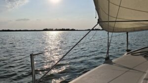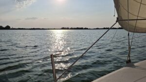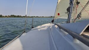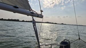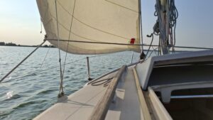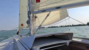 Dok jedrimo u “orcu”, malena jedrilica seče talase, a Dejan poučen iskustvom, menja položaj jedra i sve drugo postaje sekundarno. Fokusiran i skoncentrisan, ovaj vešti jedriličar znalački upravlja čamcem dok nam objašnjava da jedrenje, barem kod nas, nije masovni sport. Skup je i zahtevan, ali donosi nešto što se novcem ne može kupiti.